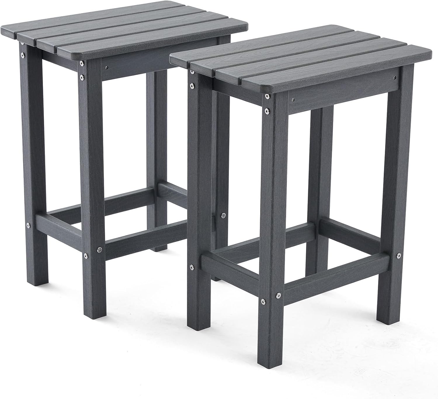 - Comfortable Slatted Seat & Easy Cleaning: The slatted seat design provides comfortable seating while promoting airflow and preventing water pooling. The smooth HDPE surface is incredibly easy to clean – simply wipe down these patio bar stools with soap and water to keep them looking pristine. Dimensions:12.2"D x 18.5"W x 24"H