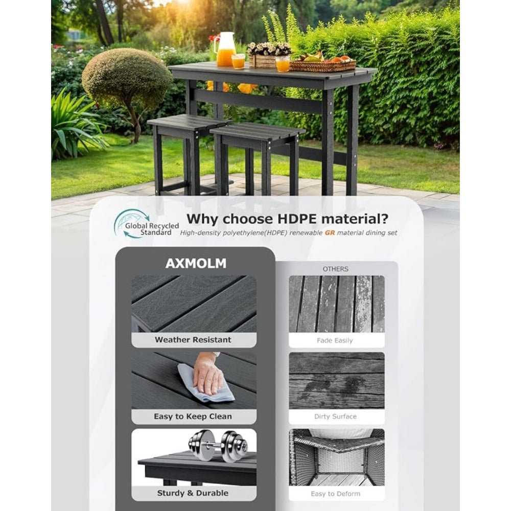 - Premium HDPE Outdoor Bar Stools: Expertly crafted from high-density polyethylene (HDPE), these patio bar stools offer exceptional durability and all-weather performance. Waterproof, UV-resistant, fade-resistant, and crack-resistant, they maintain their stylish look year-round with minimal upkeep. Realistic wood grain texture adds a touch of natural beauty